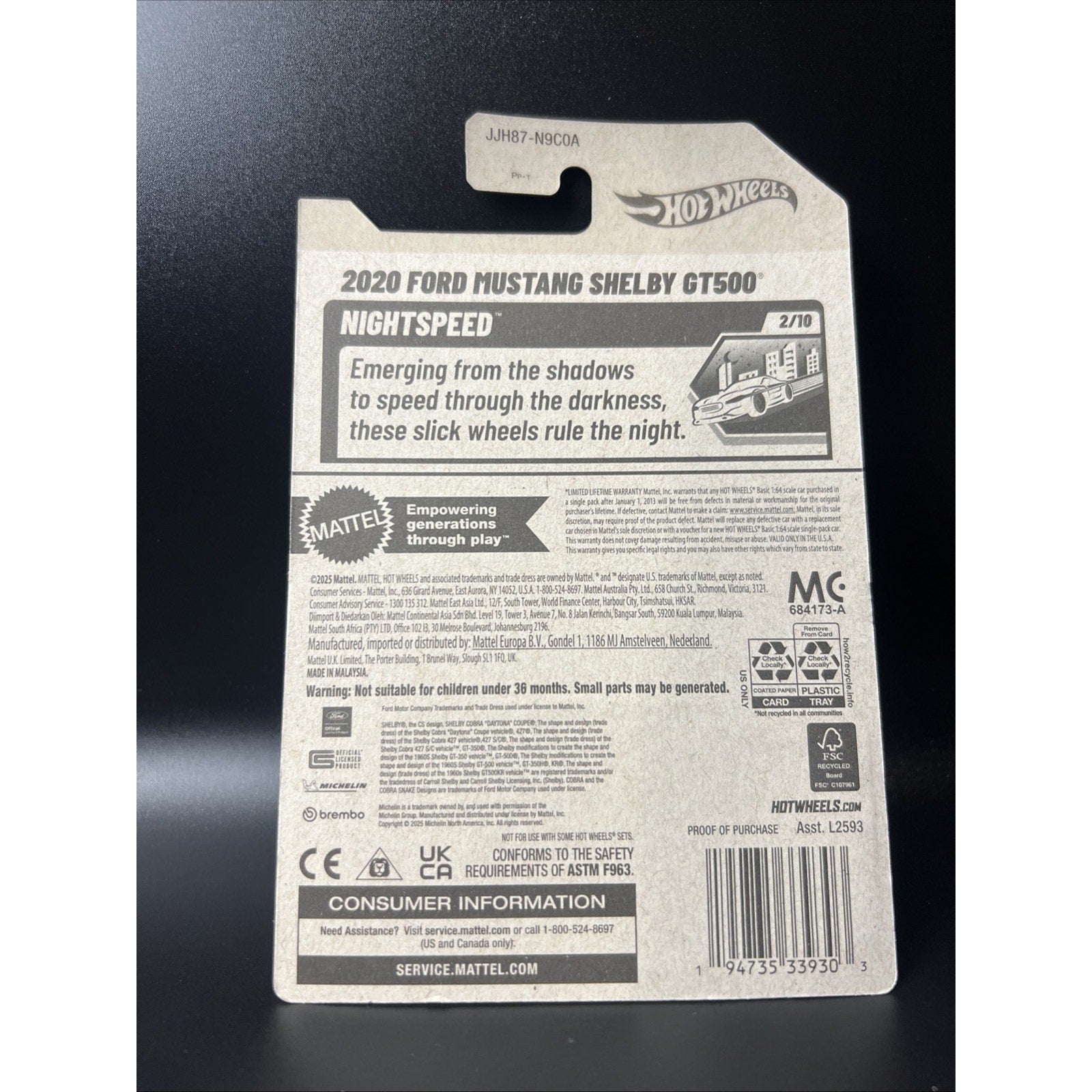 The 2026 Hot Wheels 2020 Ford Mustang Shelby GT500 New Flame Fire #10 Nightspeed is a 1:64 scale diecast model of a Ford Mustang Shelby GT500. This muscle car features a gray color and is part of the Nightspeed series by Hot Wheels. With its unopened box and new gray paint, this collectible toy is perfect for boys and girls who are fans of Ford Mustang muscle cars. Made in Malaysia, this detailed replica of the 2020 Ford Mustang Shelby GT500 is a must-have for car enthusiasts and collectors alike.