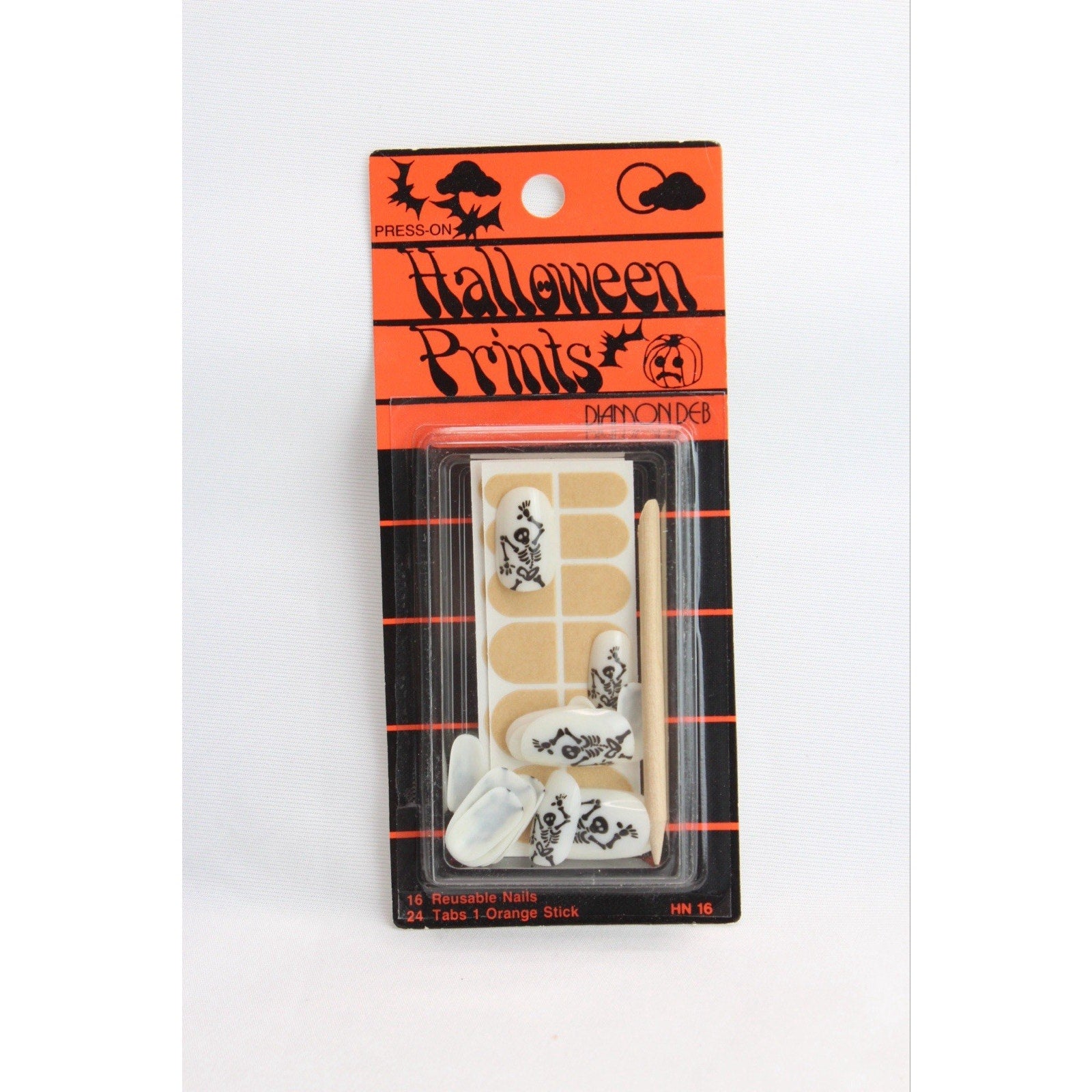 Diamon Deb Kurlash Halloween Press On Nails Vintage 1980s Orange Black Skulls.