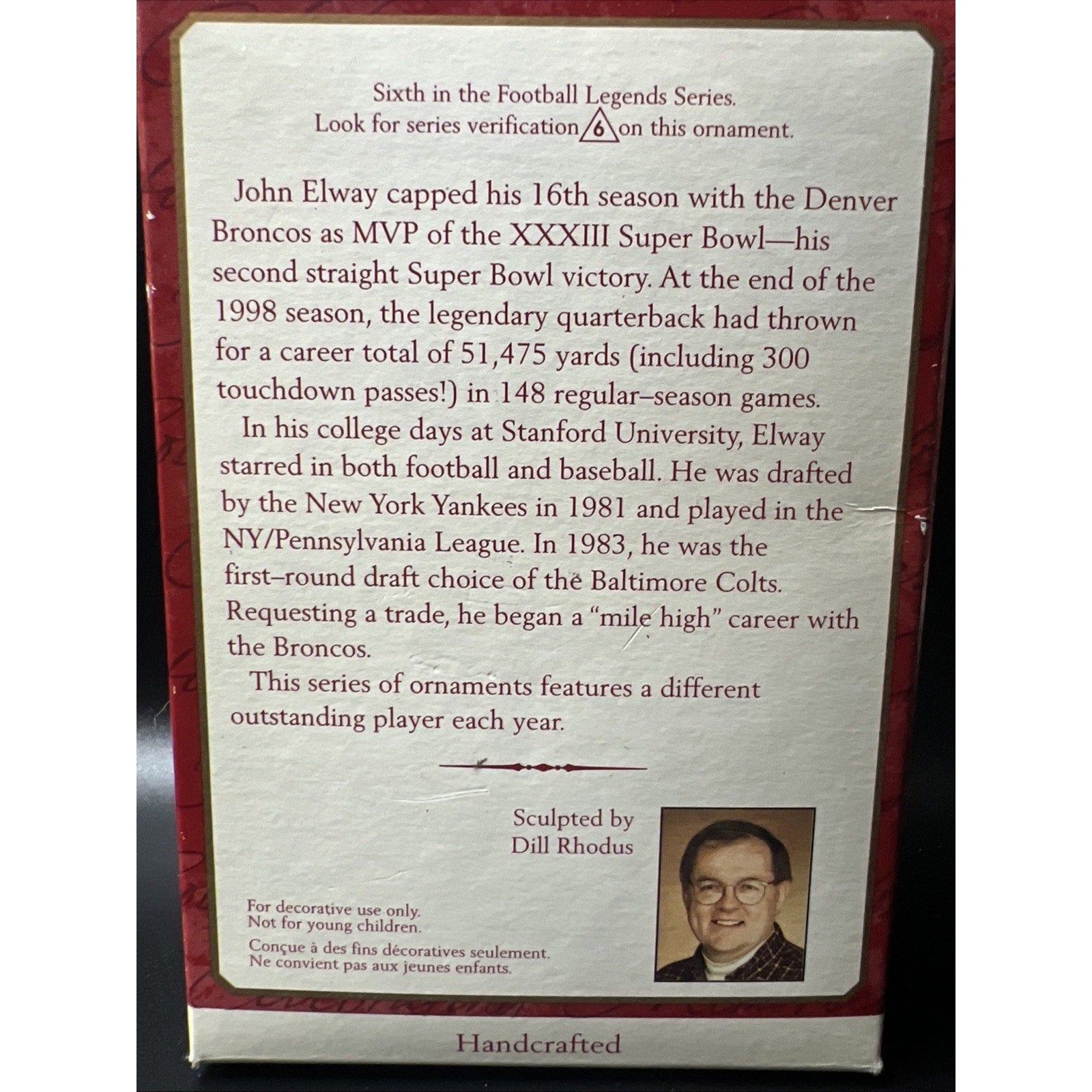 Hallmark Keepsake Christmas Ornament John Elway Denver Broncos NFL Football Vtg