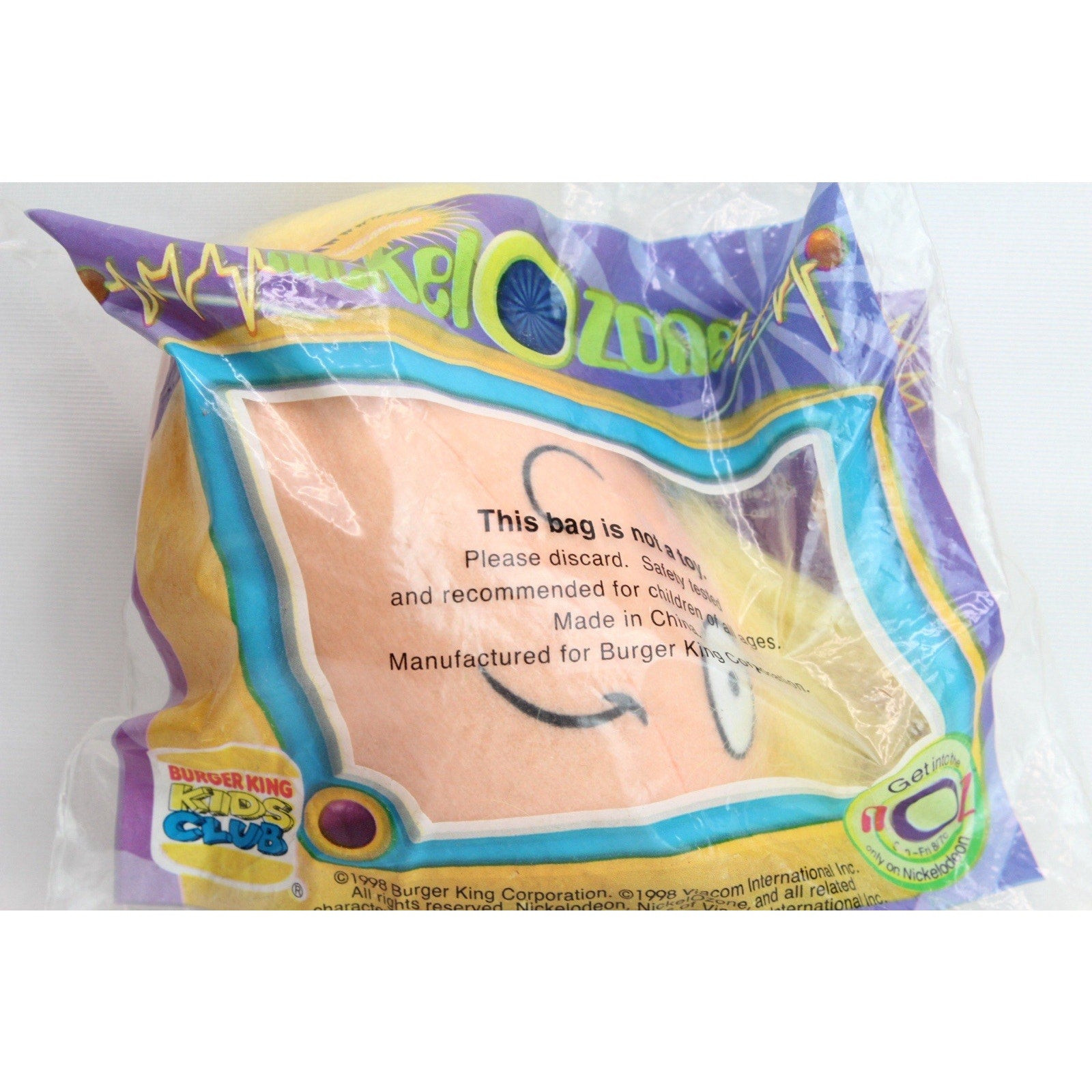 Hey Arnold Plush Head Burger King Kids Meal Nickelodeon 1998 Nickel-O-Zone Toy