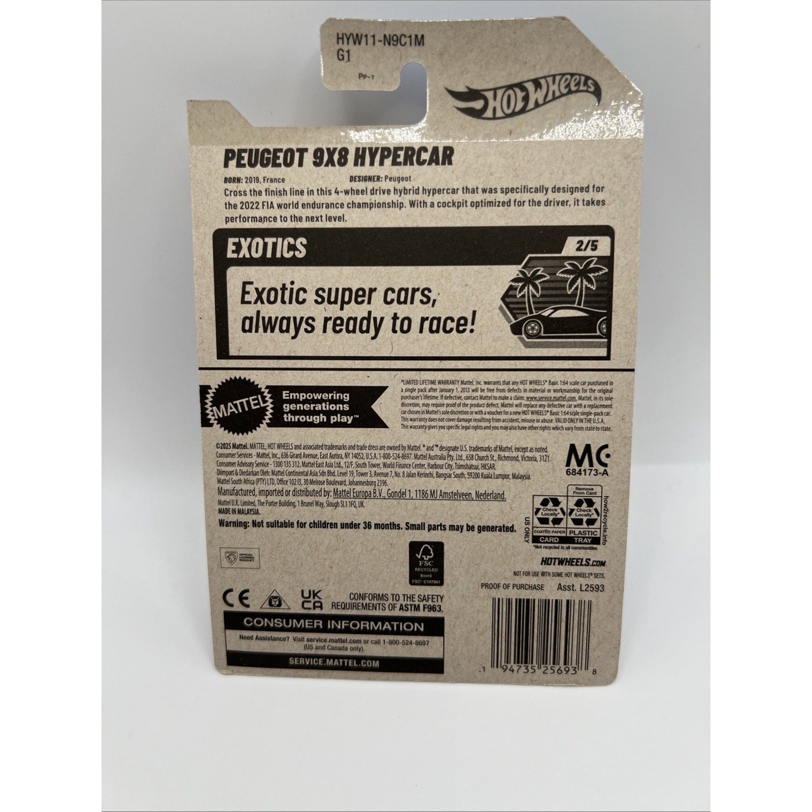 Hot Wheels 2025 Case M PEUGEOT 9X8 HYPERCAR U.S. Card In Hand Supercar Track Car