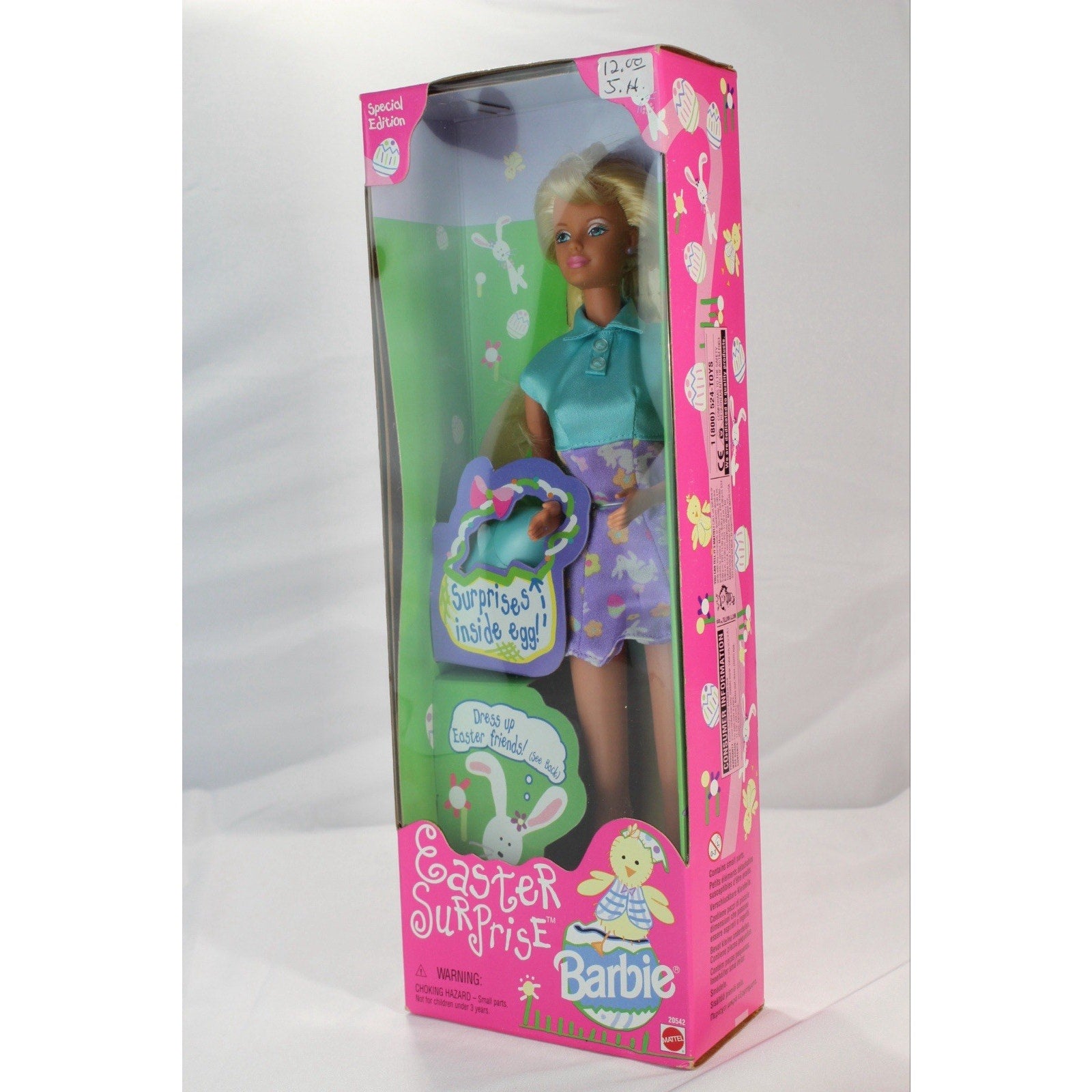 This is a 1998 Mattel Easter Surprise Barbie Doll, Special Edition 20542, still new in its original sealed box. The doll has blonde straight hair, blue eyes, and light complexion. It comes as a single unit with the doll itself included in the set.