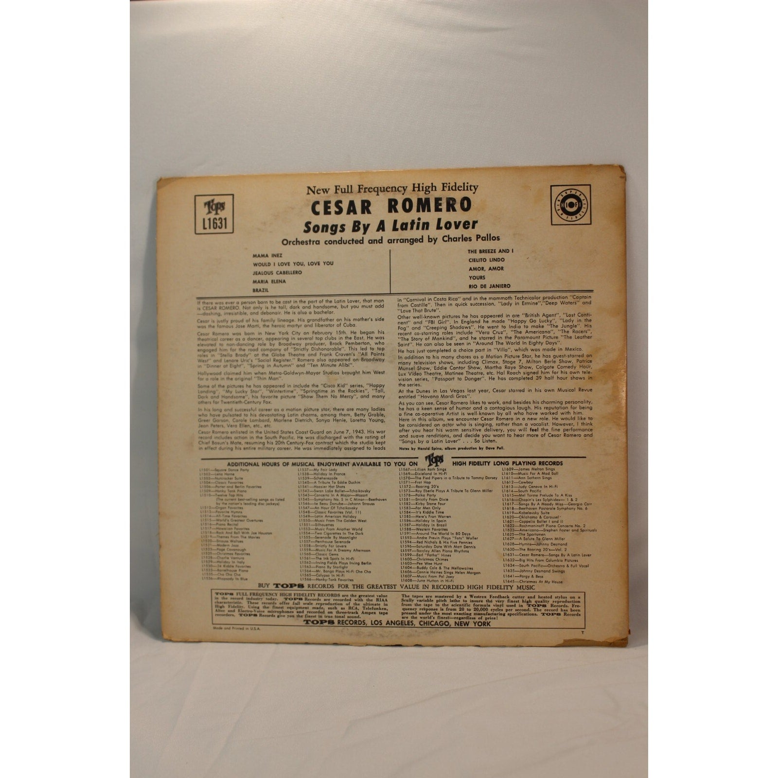 Songs by a Latin Lover Cesar Romero Record Audio Tested Video Music Album Used