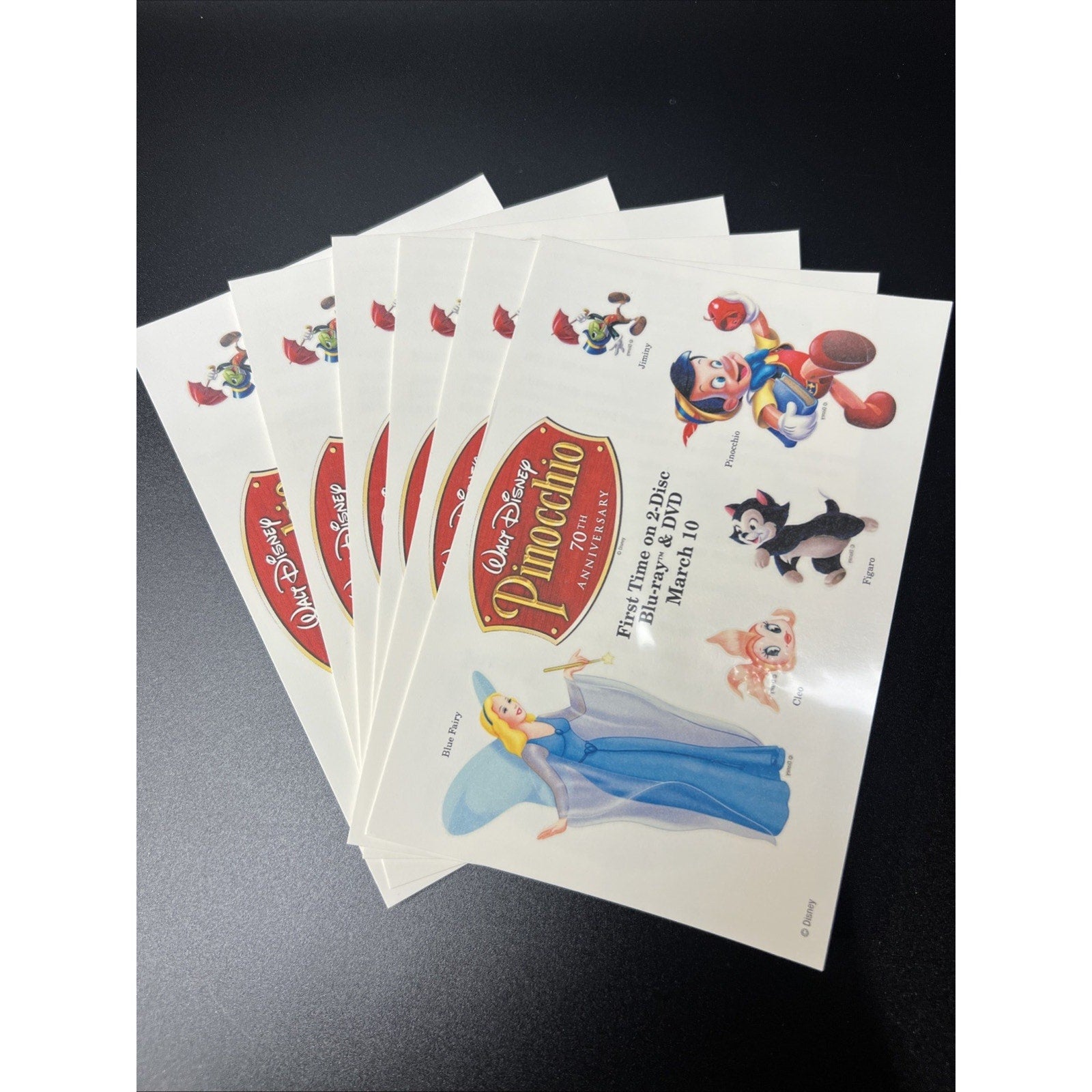 Walt Disney Pinocchio 70th Anniversary DVD Temporary Tattoo 6 Pack Rare Tattoos.